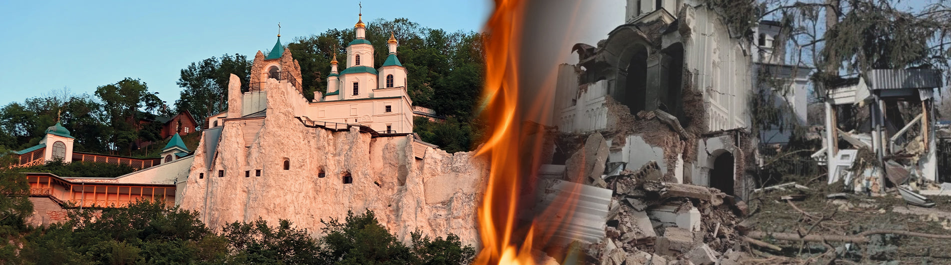 4 травня російські війська завдали прицільного удару по Святогірській лаврі, пошкодили гуртожиток, де на той момент проживали мирні жителі, а також Георгіївський скит. Кілька людей отримали поранення. На щастя, ніхто не загинув.